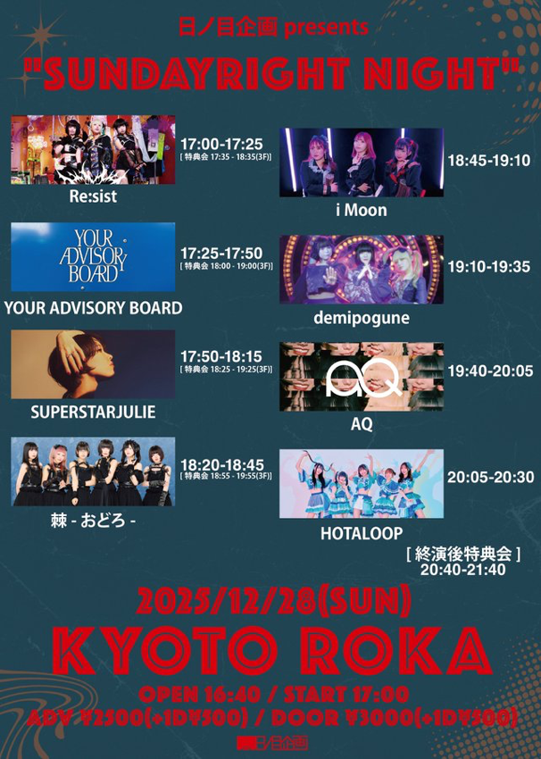 AQ , demipogune , HOTALOOP , YOUR ADVISORY BOARD , Re:sist , i Moon , 棘-おどろ- , SUPERSTARJULIE -