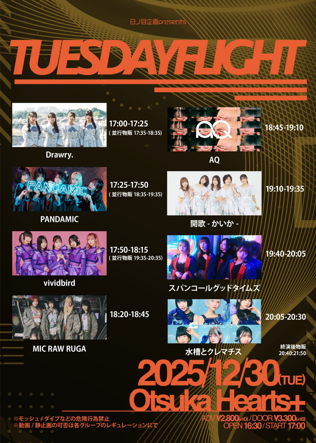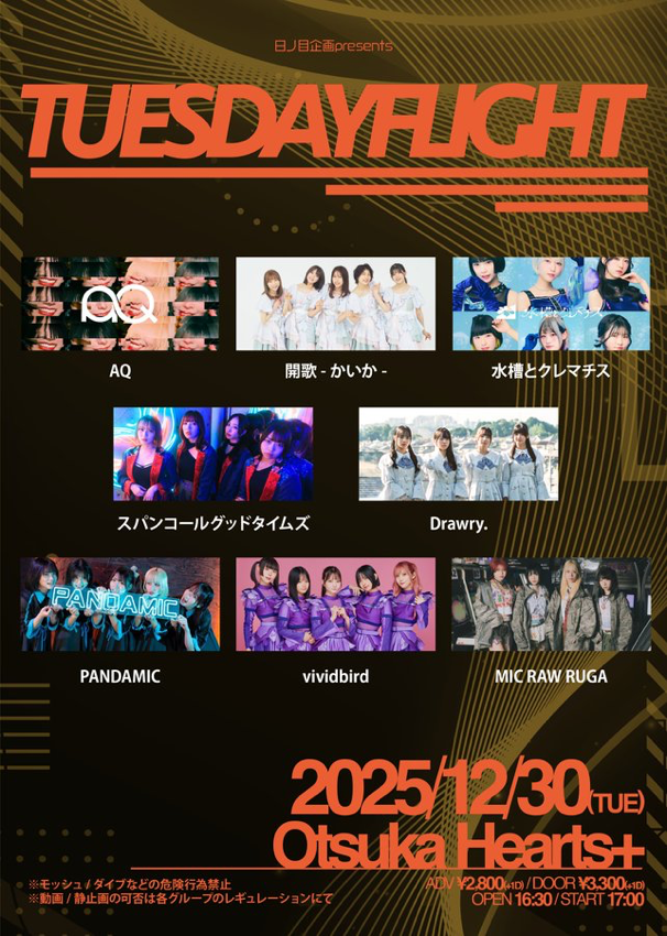 AQ , スパンコールグットタイムズ , Drawry. , vividbird , 開歌-かいか- , 水槽とクレマチス , PANDAMIC , MIC RAW RUGA -