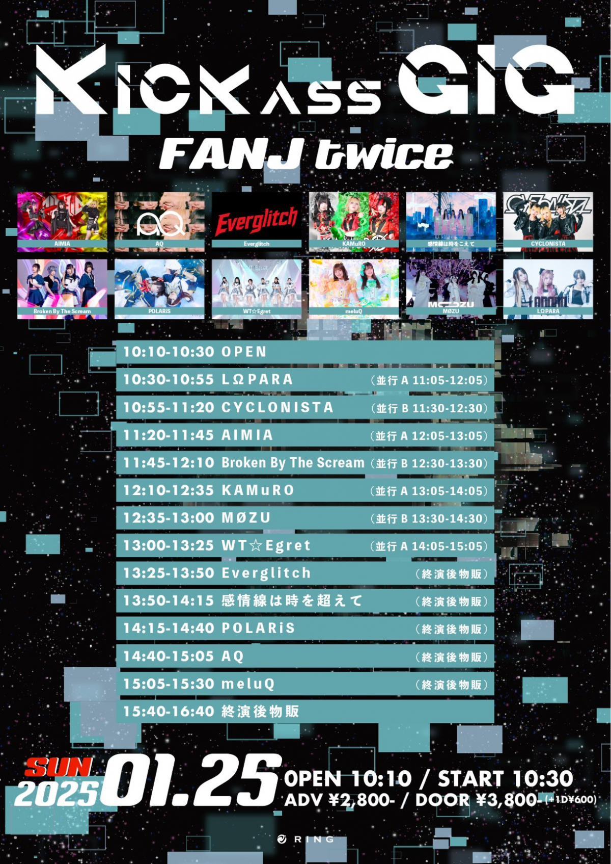 AIMIA / AQ / Everglitch / KAMuRO / 感情線は時をこえて / CYCLONISTA / Broken By The Scream / POLARiS / WT☆Egret / meluQ / MØZU / LΩPARA -