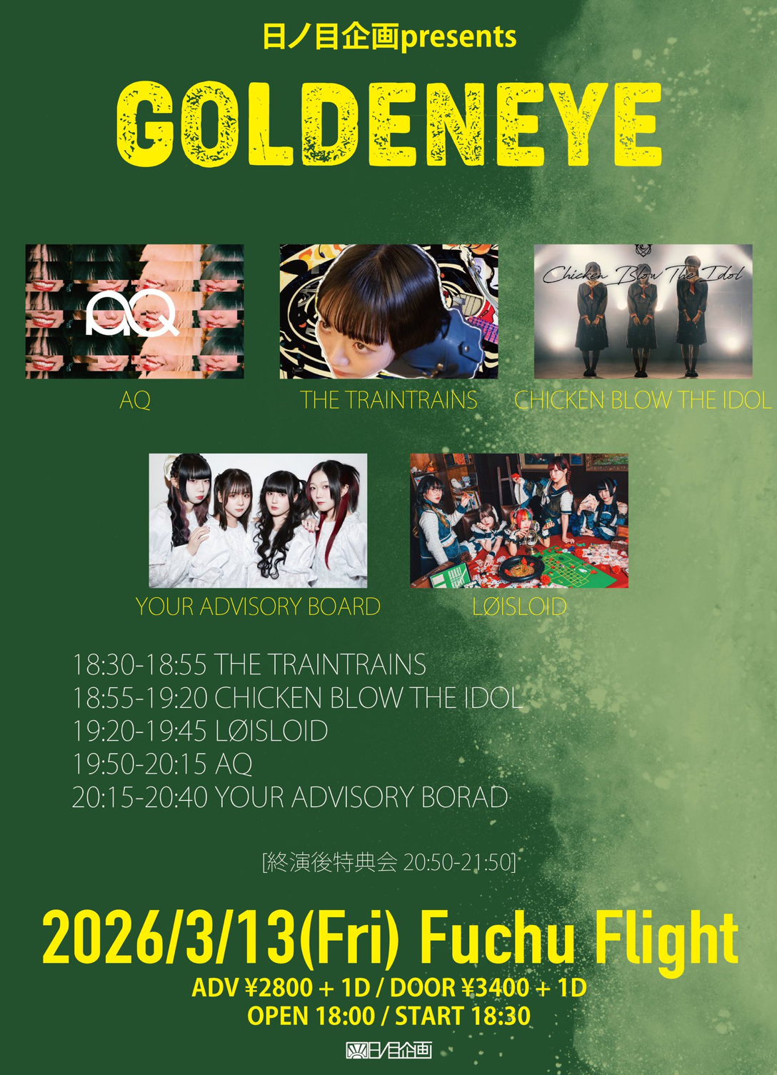 AQ / THE TRAINTRAINS / CHICKEN BLOW THE IDOL / YOUR ADVISORY BOARD / LØISLOID -