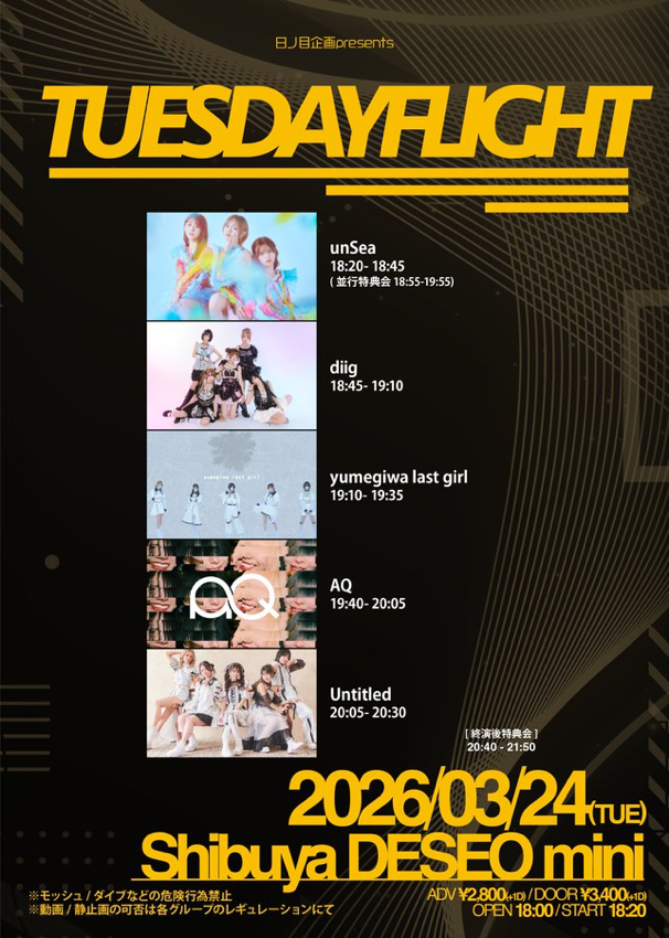 AQ ~LIVE~ 〖19:40~20:05〗 AQ ~終演後特典会~ 〖20:40~21:50〗 -
